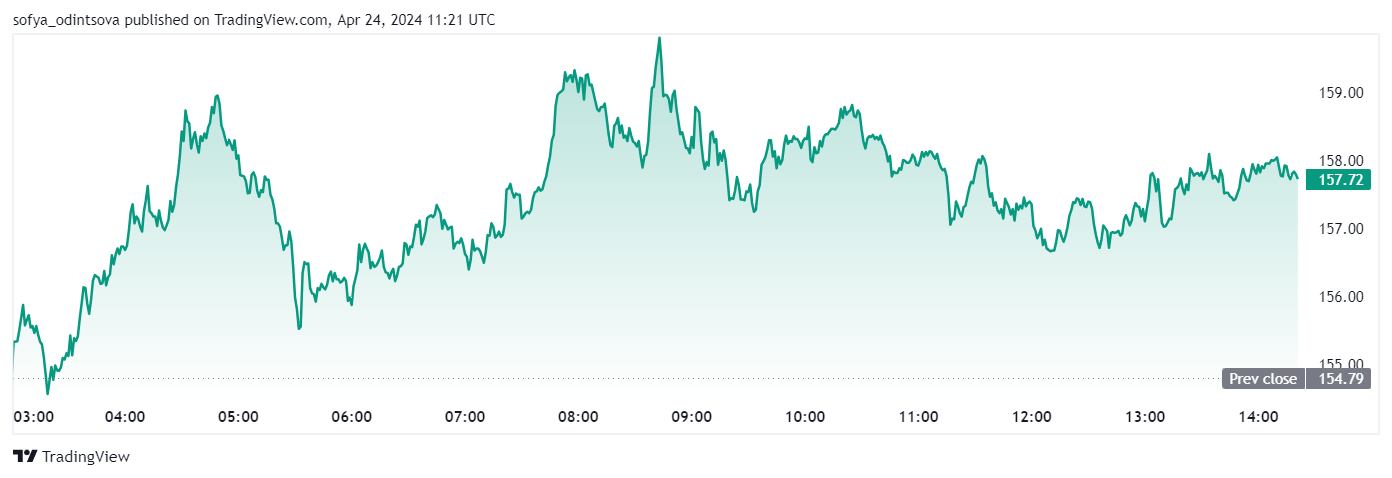 Вопреки достижениям разработчиков курс Solana с начала месяца опустился более чем на 22%. По данным TradingView, на момент написания материала SOL торгуется на отметке около $158, подорожав за последние сутки на 2%.
