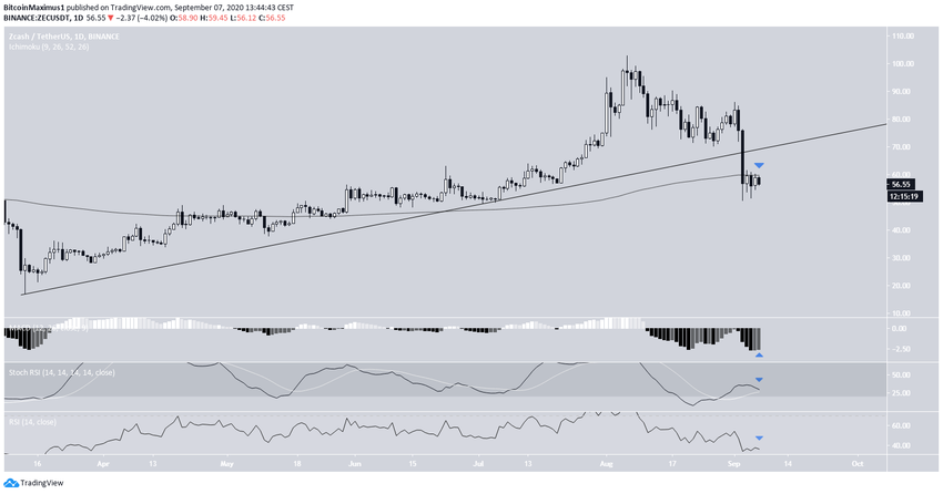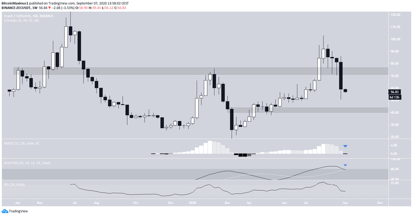 За последнюю неделю курс Zcash (ZEC) ощутимо просел, пробив ряд уровней поддержки. Это может указывать на завершение фазы роста.