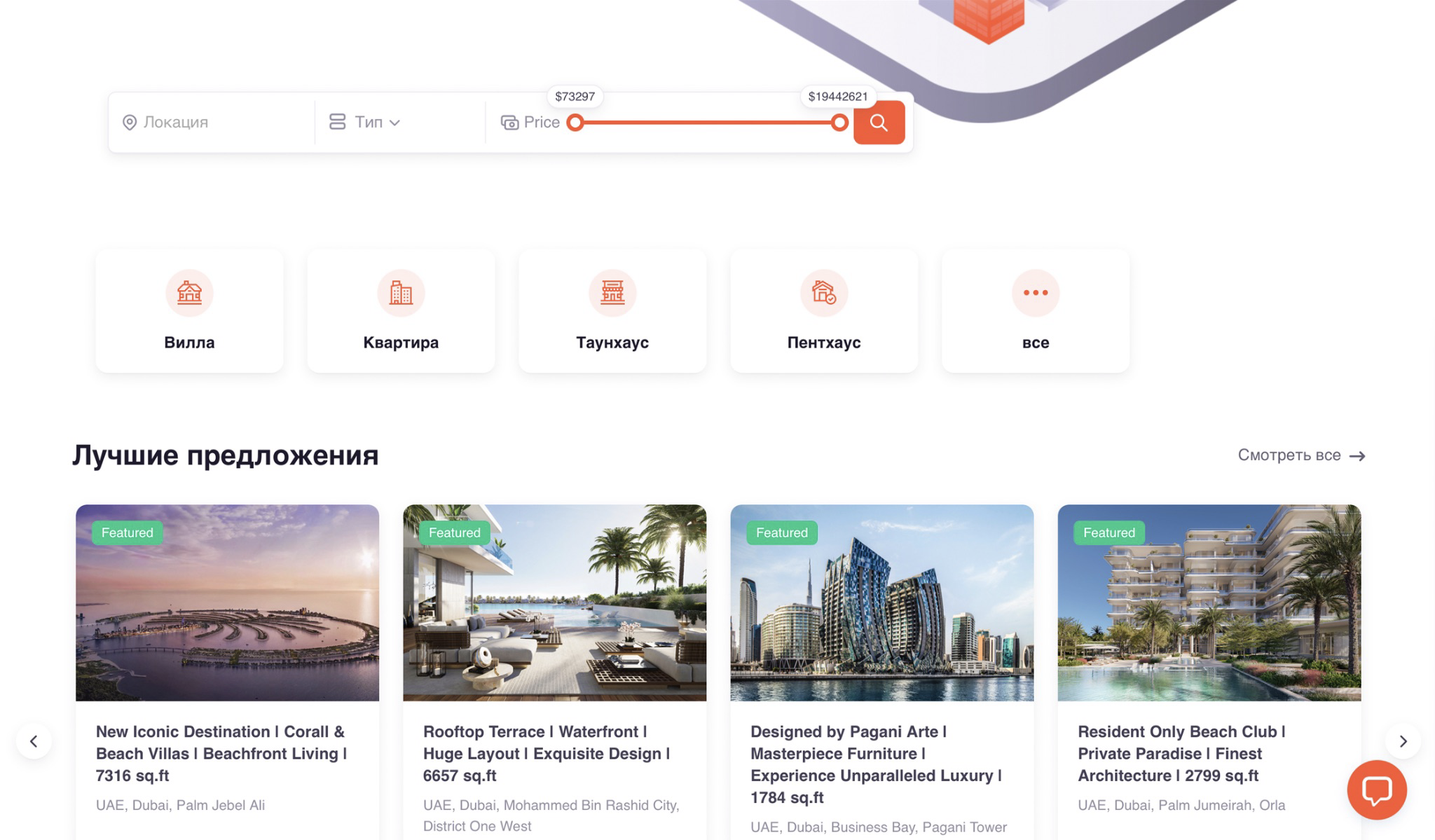 - Подобрать подходящие варианты, которых может быть несколько. Для этого можно пользоваться каталогом Crypest.com. Для удобства стоит выбрать интересующие фильтры, что позволит быстро найти объекты, отвечающие вашим требованиям. Например, в фильтре можно выбрать страну, расположение и тип объекта, площадь, количество комнат и иные параметры. Вы можете не делать этого самостоятельно: компания предлагает помощь специалистов, к которым можно обратиться через чат поддержки, мессенджер или по телефону. Сотрудники компании быстро сформируют список наиболее актуальных и соответствующих вашим требованиям объектов.