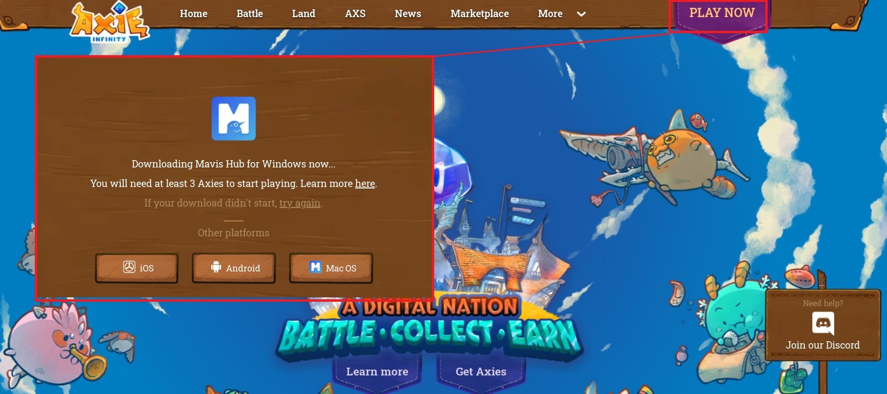 У проекта есть официальный сайт. На нем следует нажать на клавишу «play now» (играть сейчас), после чего система предложит скачать файл для установки ПО. В окне нужно выбрать подходящий вариант, в зависимости от программного обеспечения устройства, на котором вы планируете играть: Windows, Mac, Android или IOS.