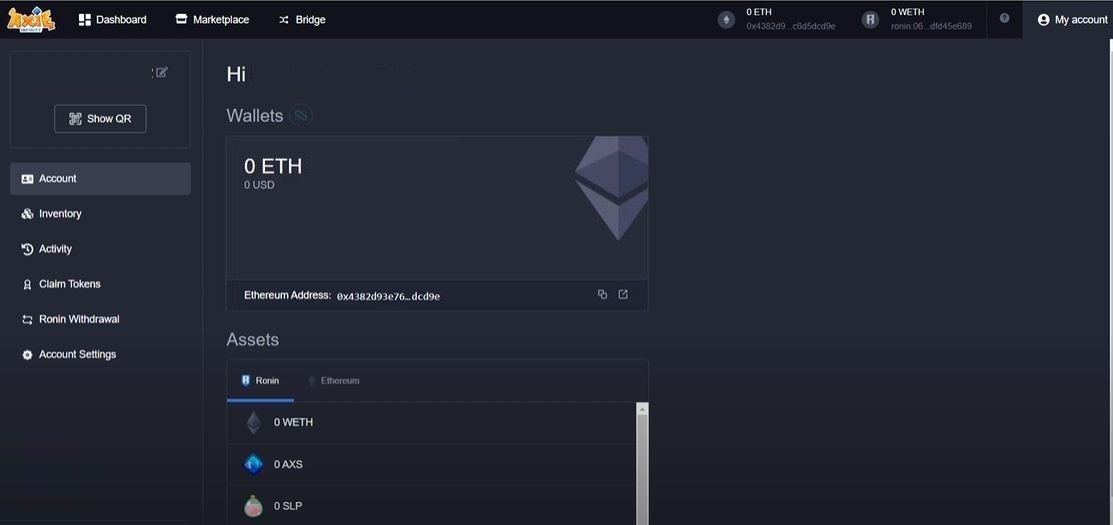 Готовый аккаунт Axie Infinity выглядит следующим образом: