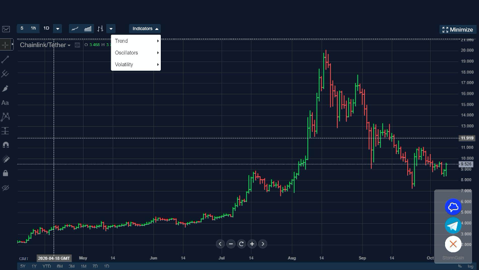 Для торговли доступно более 50 популярных пар. Минимальная сумма сделки равняется 10 USDT, но можно воспользоваться мультипликатором до 300х, что формально увеличит сумму сделки до 3000 USDT. Это является одним из самых больших преимуществ StormGain и аргументом для опытных криптотрейдеров, которые не боятся играть по-крупному.