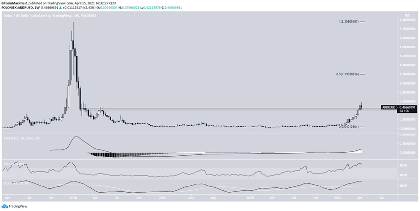 В ходе первой недели апреля курс ARDR пробил область сопротивления $0.435. Ранее цена с апреля 2018 года торговалась под этой отметкой.