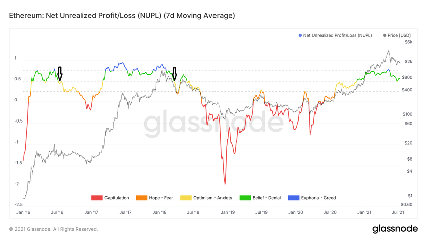 Рекордный максимум NUPL для ETH достигал 0,934. Это произошло в январе 2017 года.