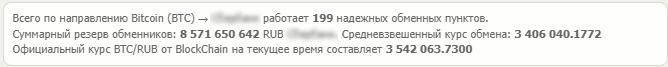 Поэтому для выборки брались обменники, оказывающие услуги по продаже биткоина в обмен на рубли в одном из крупнейших банков страны. На момент написания материала всего в агрегаторе зарегистрировано почти 200 обменников с указанным направлением операции.