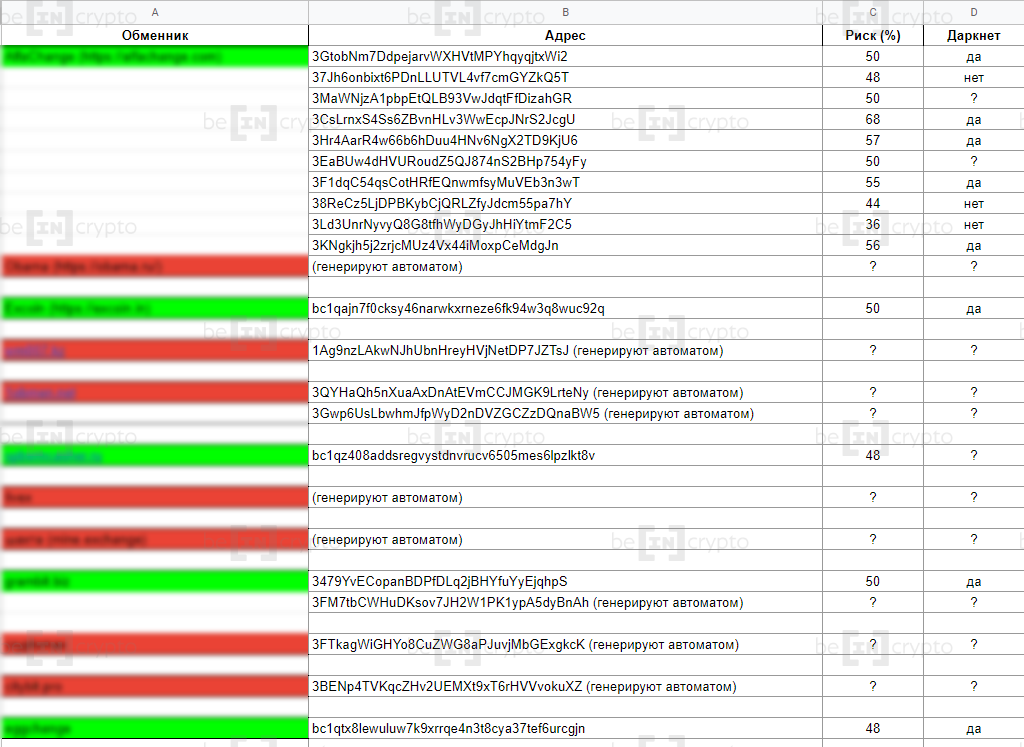 Редакция BeInCrypto решила выяснить, насколько вообще опасно контактировать с обменниками криптовалют, и сколько из них действительно могут способствовать (произвольно и непроизвольно) отмыванию денег. С целью сохранения объективности редакция не будет раскрывать ни названия обменников, ни названия других субъектов, вовлеченных в процесс обмена криптовалют.