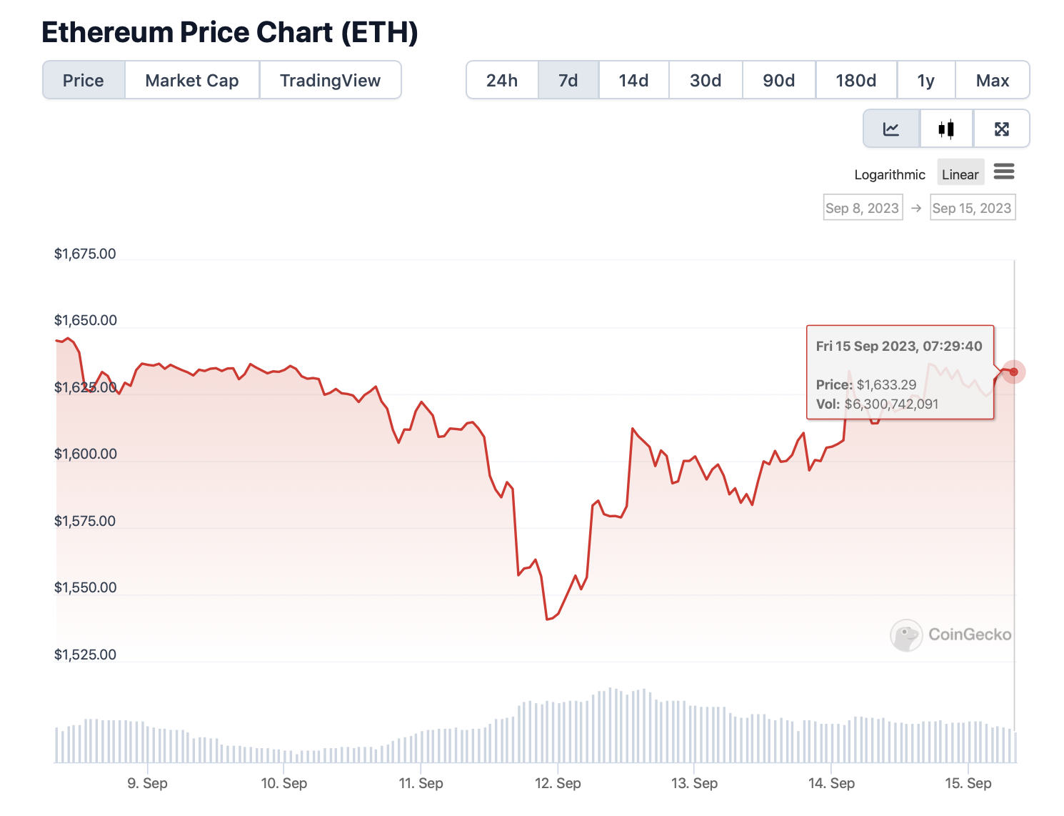 Динамика Ethereum, тем временем, выглядит куда слабее. За неделю актив потерял в цене 1%, опустившись к отметке $1633.