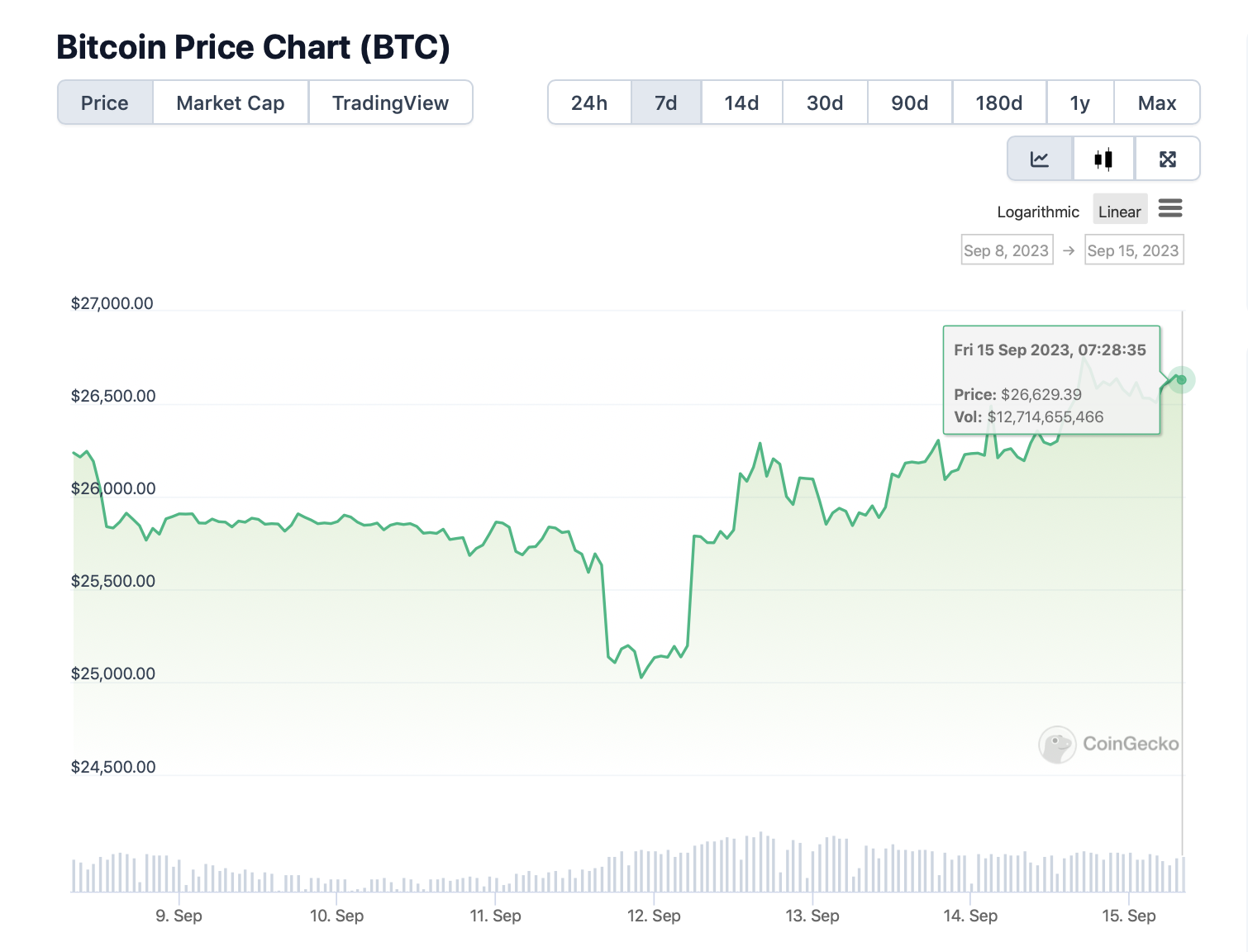 На этой неделе на крипторынке наблюдалось некоторое оживление: после закрепления выше $26 000 цена главной криптовалюты предприняла несколько попыток прорыва к следующему сопротивлению на уровне $26 800. На момент написания BTC торгуется у отметки $26 630.