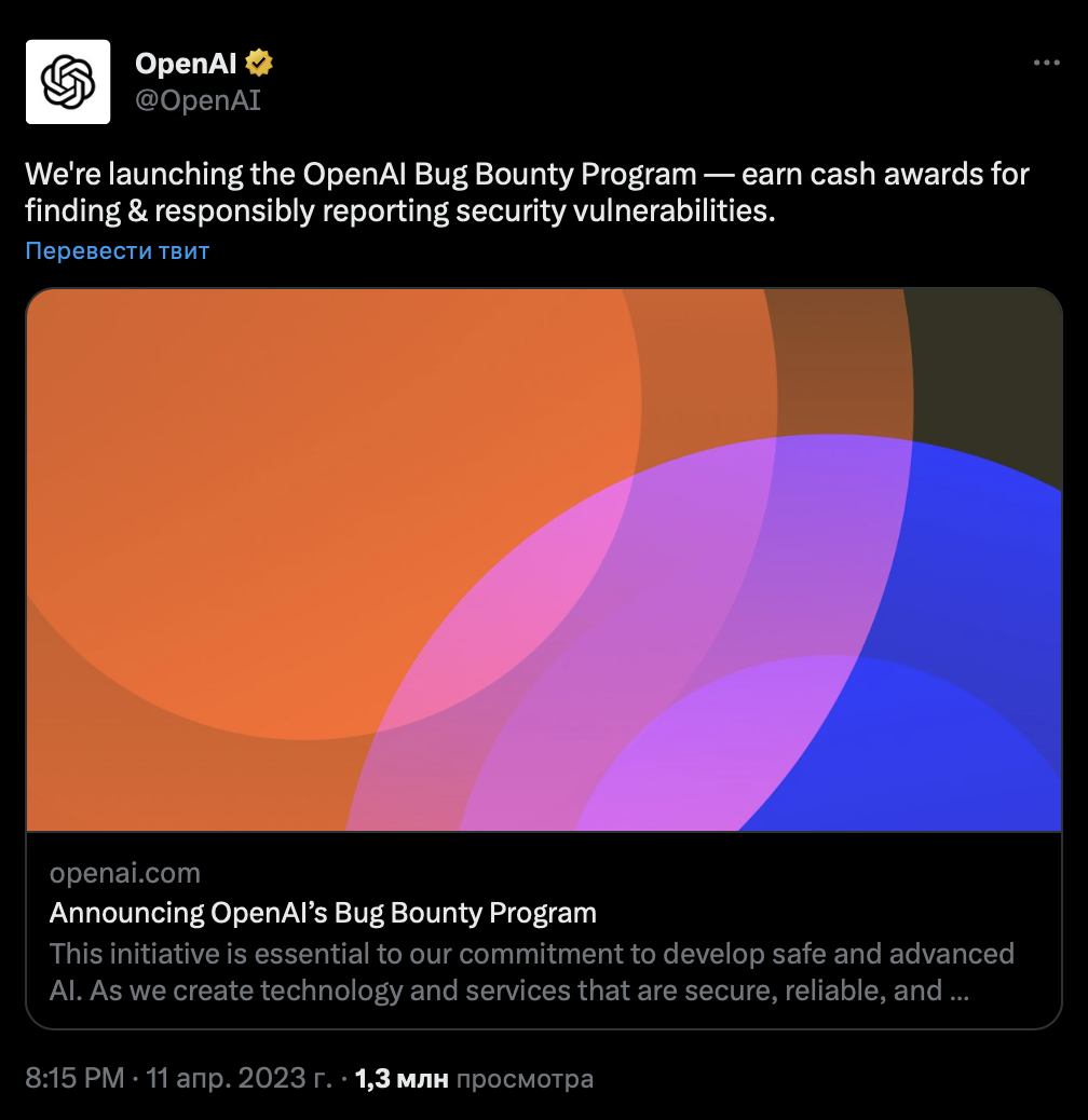 Базирующаяся в Сан-Франциско компания OpenAI сообщила о запуске программы вознаграждения за обнаружение уязвимостей и ошибок безопасности в ее продуктах.