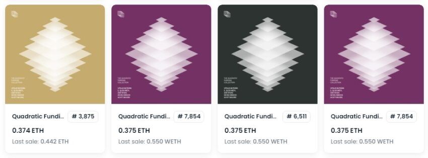 На торговой платформе OpenSea стремительно растет в цене NFT-коллекция под названием Quadratic Funding. Это прямая отсылка к вкладу сооснователя Ethereum и признанного тяжеловеса криптоиндустрии Виталика Бутерина в популярную модель финансирования в сегменте Web3.