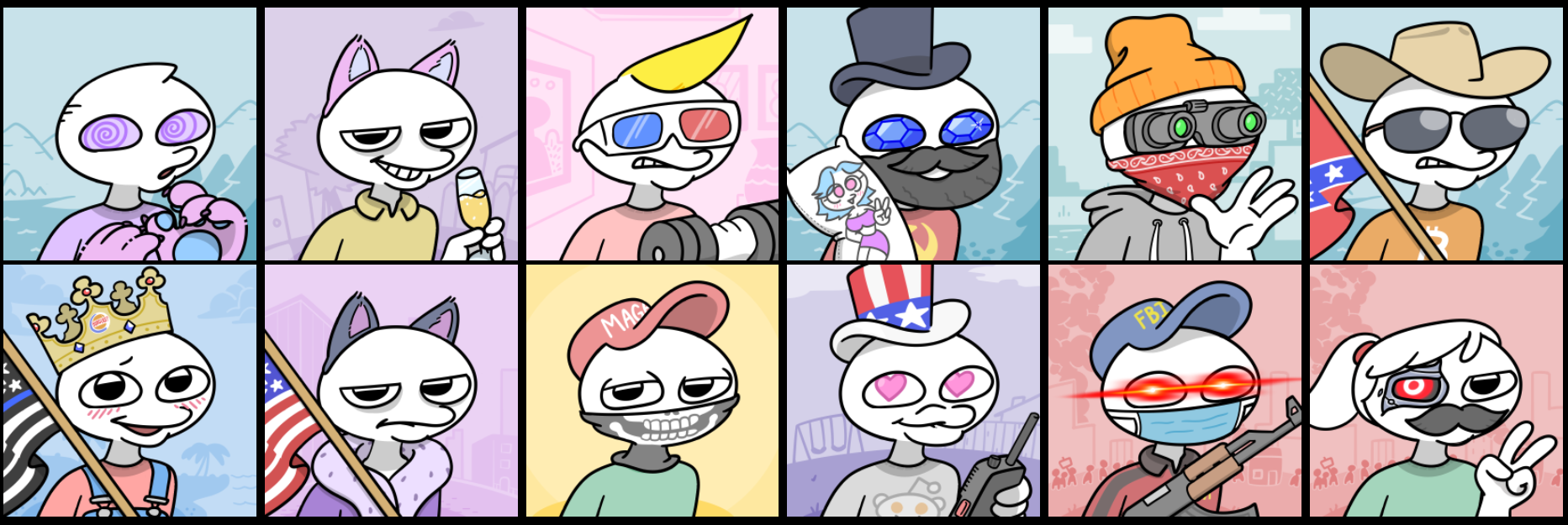 SponsoredПо словам художника, площадки убрали из листинга его коллекцию 5000 NFT под названием Flurks. Коллекция выполнена по модели Bored Ape Yacht Club, где каждый токен сгенерирован в случайном порядке. В числе созданных мультяшных персонажей есть якобы сторонники про-Трамповского движения MAGA, агенты ФБР с перевесом АК-47 и другие.