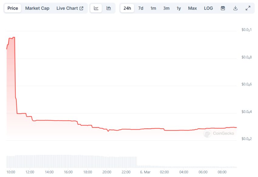 По данным CertiK, 4 марта аккаунт развертывателя протокола продал 489 млн OZK на децентрализованной бирже (DEX) Uniswap за $132 тыс. В результате продажи цена токена обвалилась на 98%.