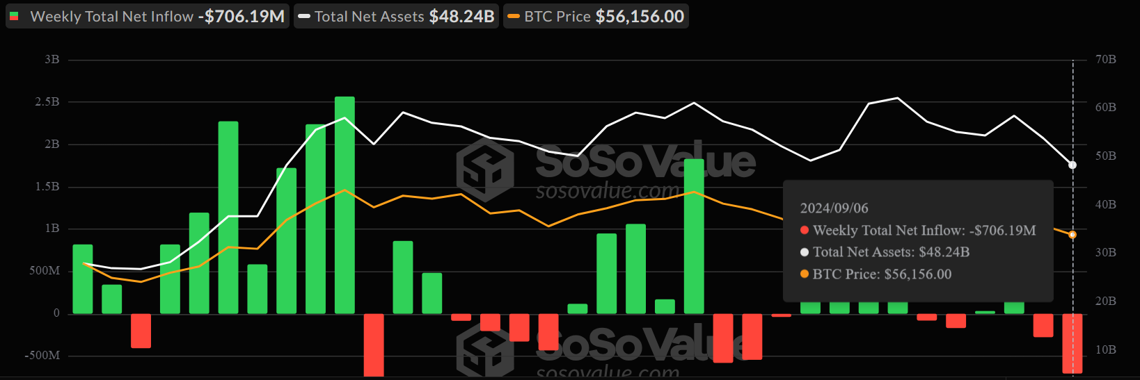 Отток также способствовал снижению общего объема активов биткоин-ETF до $48,24 млрд.