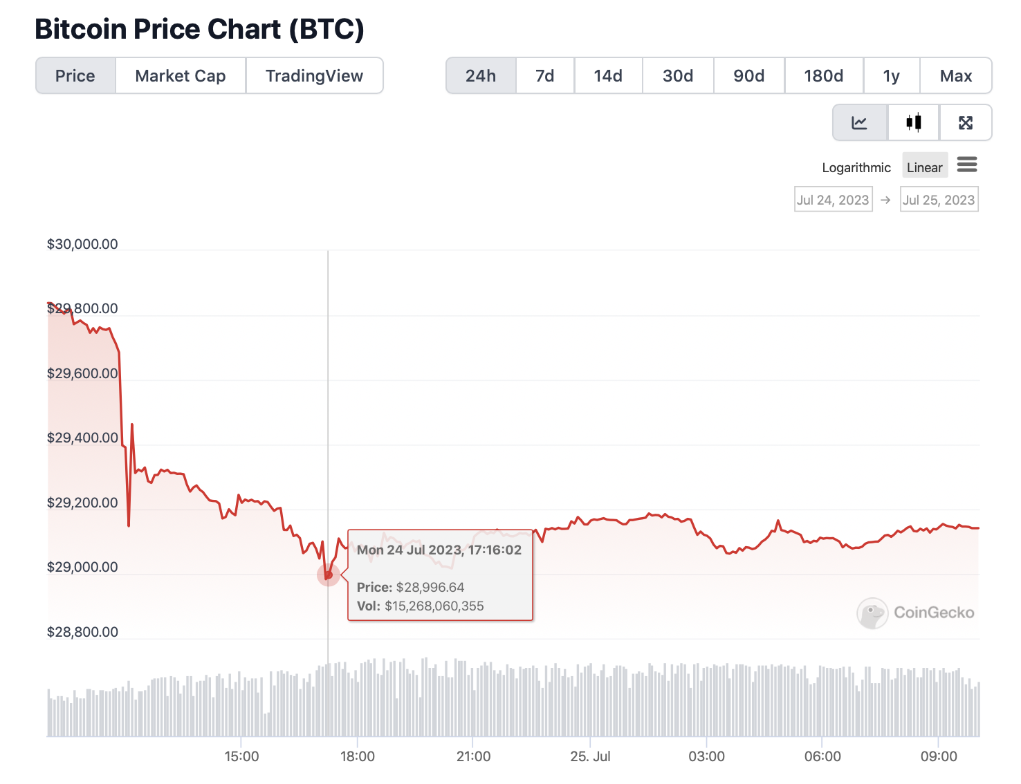 В результате бычий импульс, который привел биткоин к новому годовому максимуму, практически сошел на нет: вчера цена BTC ненадолго опустилась ниже отметки $29 000.
