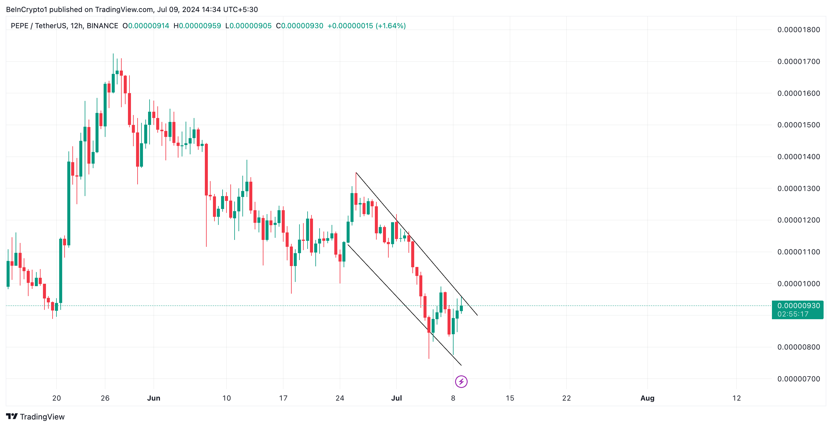 Стоимость Pepe (PEPE) взлетела более чем на 10% за последние 24 часа. Разбираемся, хватит ли у мемкоина сил вырваться из нисходящего канала