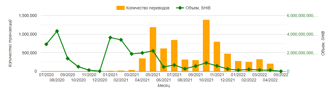 В марте редакция писала, что всего за 17 марта число держателей токена SHIB сократилось более чем на 30 000. До этого показатель стабильно рост в течение трех месяцев. По данным Google Trends, частота поисковых запросов по термину «купить монету Shiba Inu» (Buy Shiba Inu coin) снизилась с отметки 100 30 ноября 2021 года до 3 по состоянию на начало февраля 2022 года. С 28 января по 3 февраля 2022 года экосистема SHIB потеряла 4223 адреса, завершив начавшийся в ноябре трехмесячный период роста.