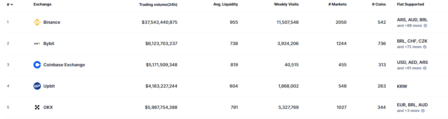 Сегодня Upbit занимает четвертое место в мире по объему торгов. Ее опережают только Coinbase, Bybit и Binance.