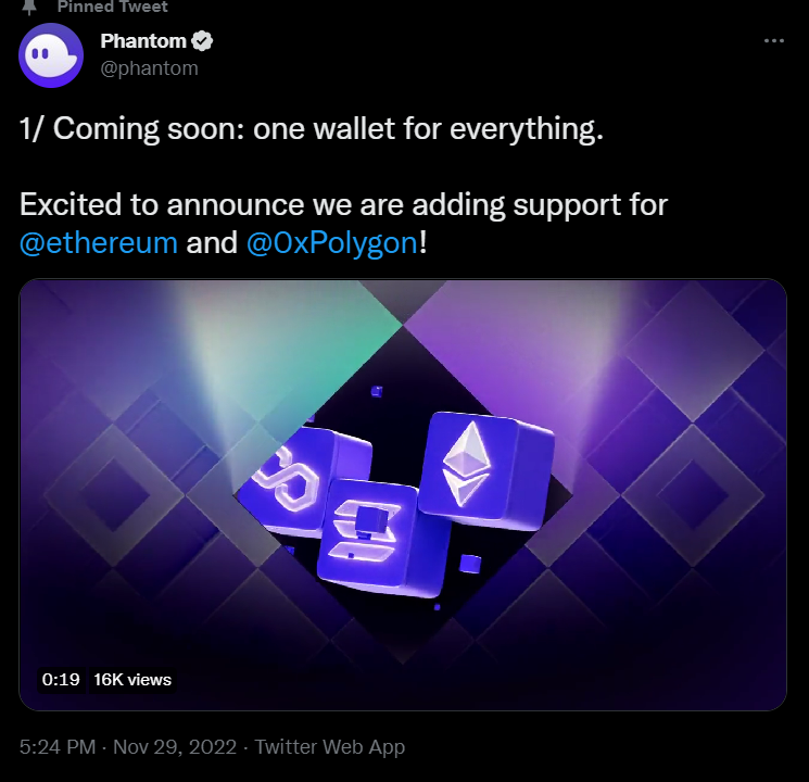 Криптокошелек Phantom, созданный изначально с фокусом на экосистему Solana, ведет работу над интеграцией сетей Ethereum и Polygon. Об этом представители проекта сообщили у себя на странице в твиттере.