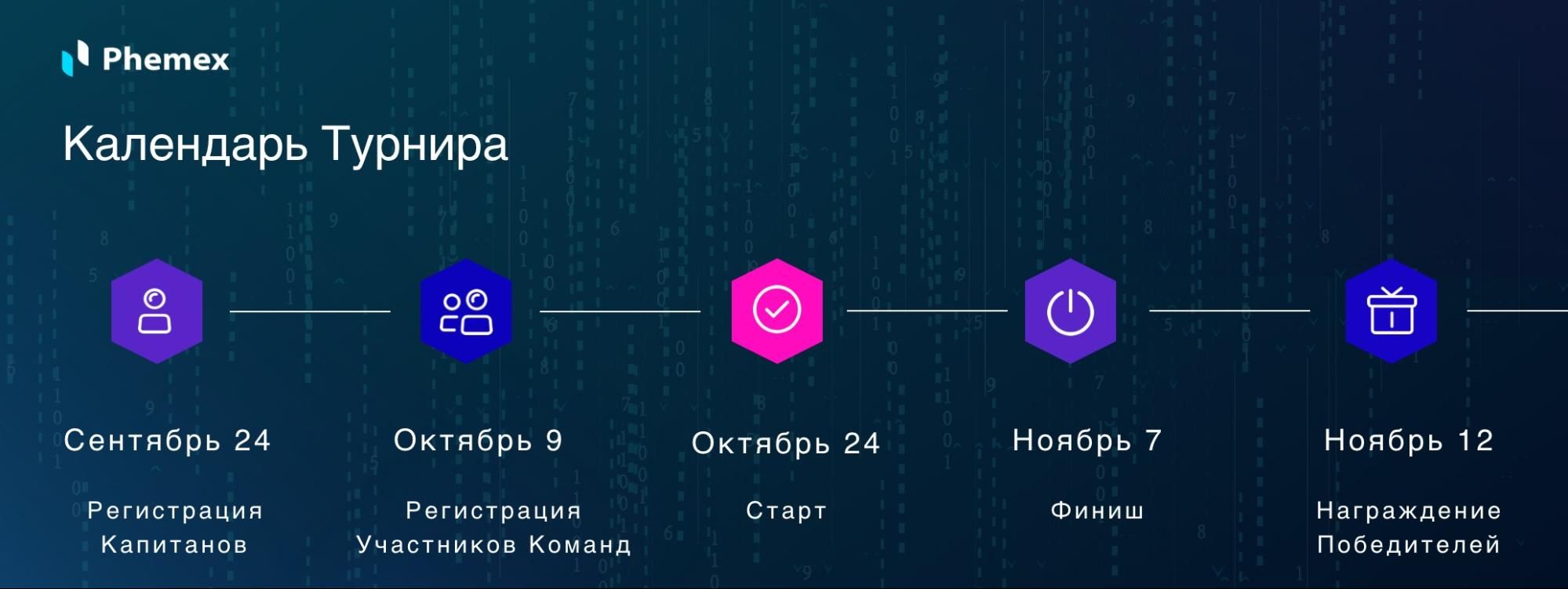 Регистрация для капитанов команд уже открыта. Трейдеры, обладающие достаточным влиянием для привлечения большой аудитории, могут подать заявку на создание своей команды, заполнив эту форму. Остальные участники смогут зарегистрироваться и выбрать команду с 9 октября 2020 г. Открытие конкурса Арена Трейдеров Phemex состоится 24 октября и продлится до 7 ноября, а призы будут распределены до 12 ноября.