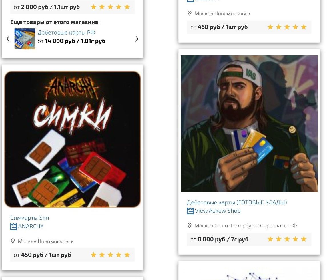 Как SIM-карты, так и карты банков оформляют на других людей. Как итог, покупатель товара получает возможность анонимно совершать звонки и проводить банковские операции. Предложения, в том числе, нацелены на представителей криптосообщества, которые хотят сохранять конфиденциальность при работе с цифровыми активами.