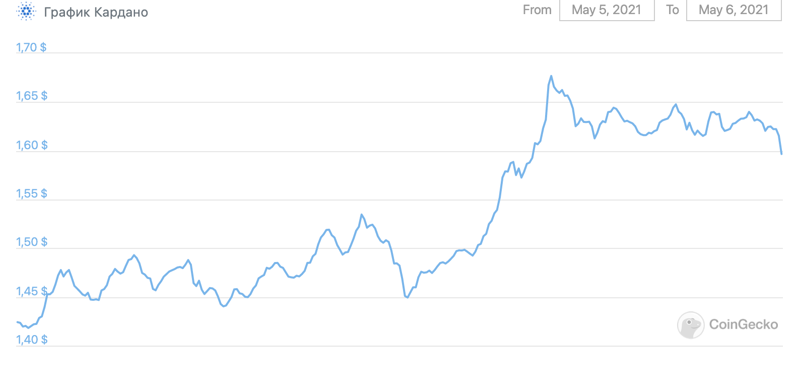 Cardano занимает седьмую строчку в рейтинге капитализации и быстро наращивает позиции на фоне целого потока благоприятных фундаментальных новостей. Ранее токен обновил рекорд (ATH) на уровне $1,68.