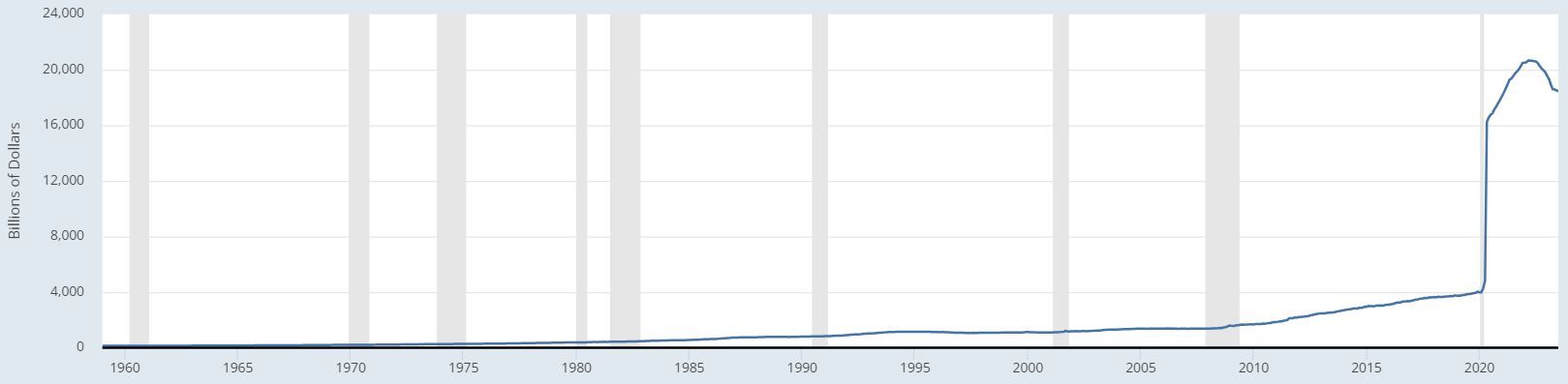 Например, 80% долларов, которые циркулируют на рынке, напечатали в период с января 2020 по октябрь 2021 года. За эмиссией такого объема валюты в 2022 году последовала череда повышений ключевой ставки, направленная на борьбу с разогнавшейся инфляцией. Чтобы не усугублять ситуацию, США остановили печатный станок. При этом в марте 2023 года — на фоне краха Silicon Valley Bank — его вновь пришлось временно запустить, чтобы «заткнуть» нарастающий кризис деньгами.