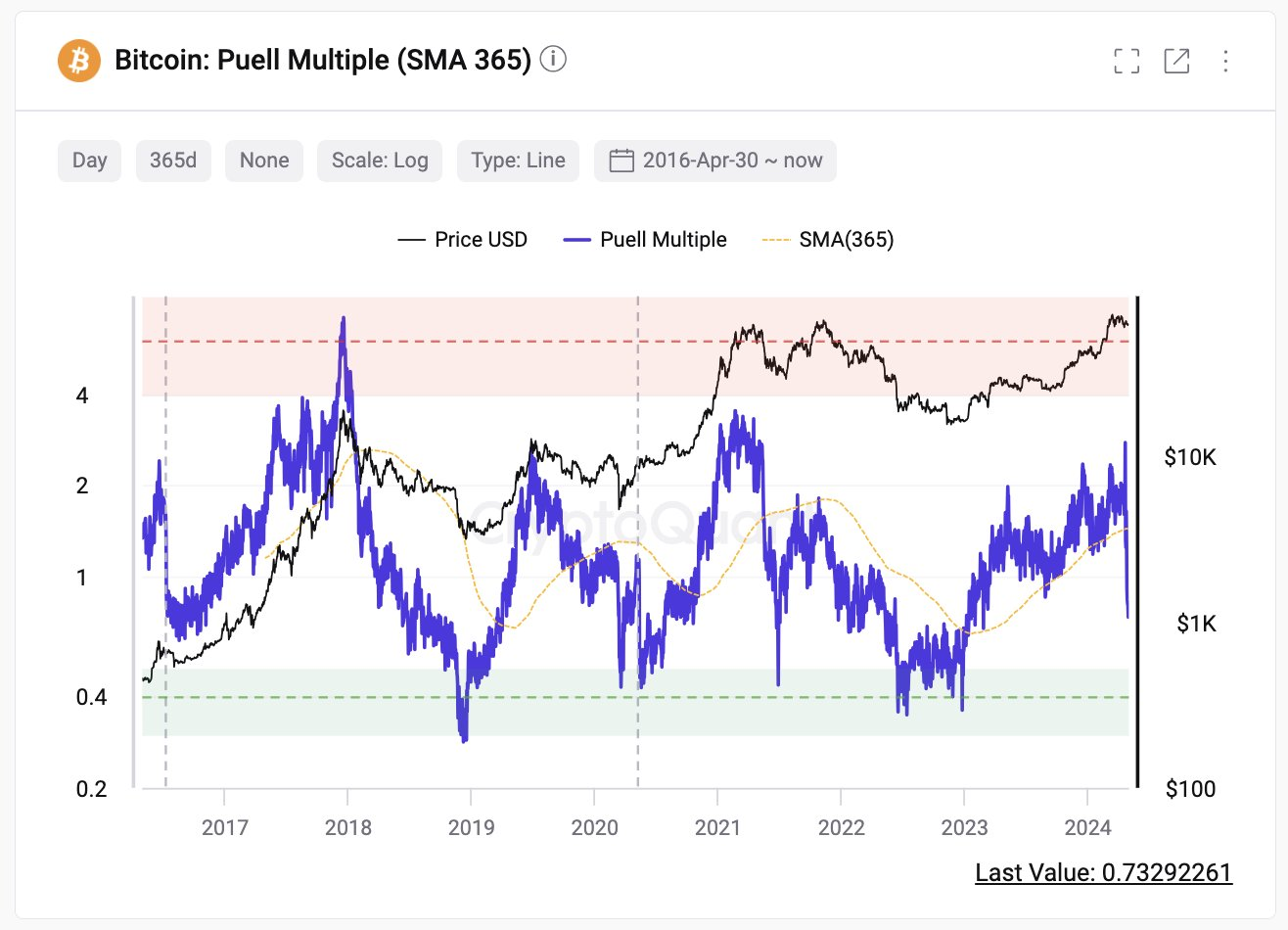 Перед халвингом BTC 2024 года аналитики предупреждали о вероятной распродаже криптовалюты майнерами. Генеральный директор CryptoQuant Ки Ен Джу отметил, что, несмотря на уменьшение доходов майнеров до уровней начала 2023 года, пока нет явных признаков их массовой капитуляции, которые могли бы сигнализировать об усугублении кризиса.