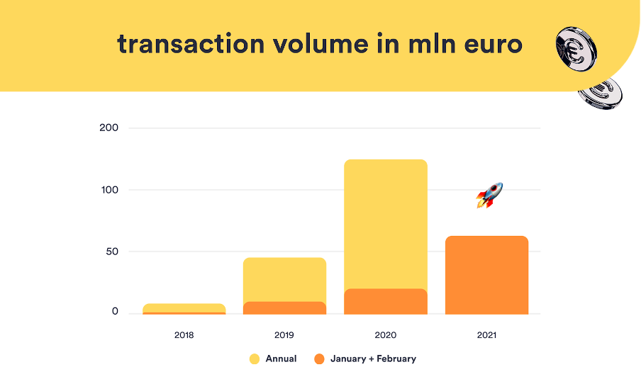 К концу февраля 2021 года оборот в Crypterium уже достиг 50% от совокупного показателя за предыдущий год.