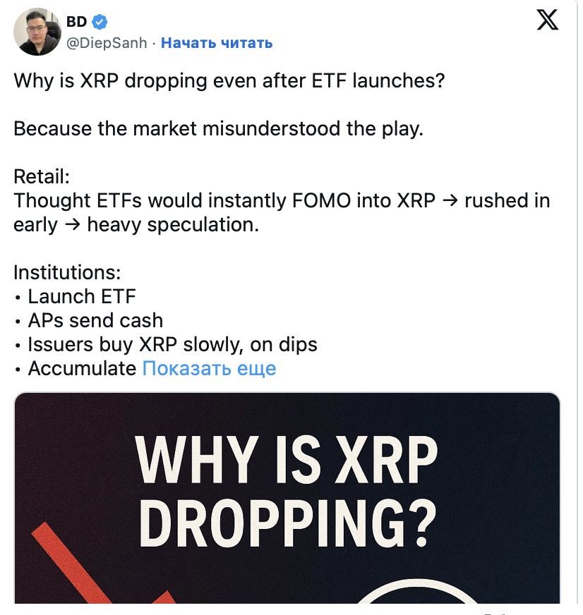 SponsoredЗначительный вклад в недавнее снижение внесли крупные инвесторы. Согласно отчетам, в течение 48 часов после запуска ETF так называемые киты реализовали около 200 млн XRP.