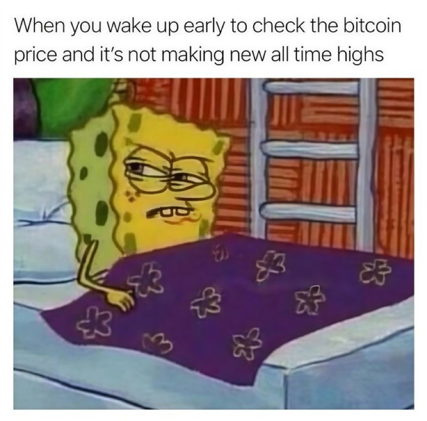 Sponsored Sponsored«Когда проснулся пораньше, чтобы проверить цену биткоина, а она не обновила абсолютный максимум».