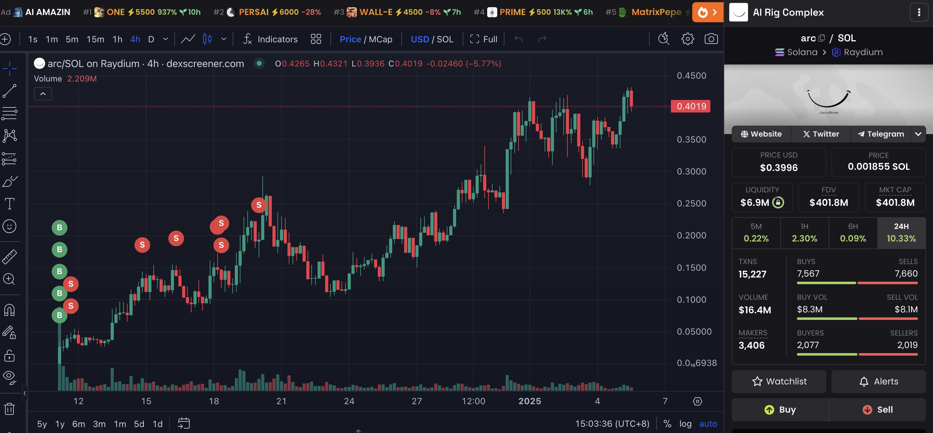 Успех инвестора не был бы таким ярким без $arc. Он вложился в монету, когда ее рыночная капитализация составляла $15 млн. Трейдер потратил $212 тыс. на покупку 11,6 млн токенов $arc. Позднее он продал 1,6 млн токенов за $212 тыс. На его кошельке осталось10 млн $arc на сумму $4 млн. Таким образом общая прибыль от покупки криптовалюты превысила $4 млн.