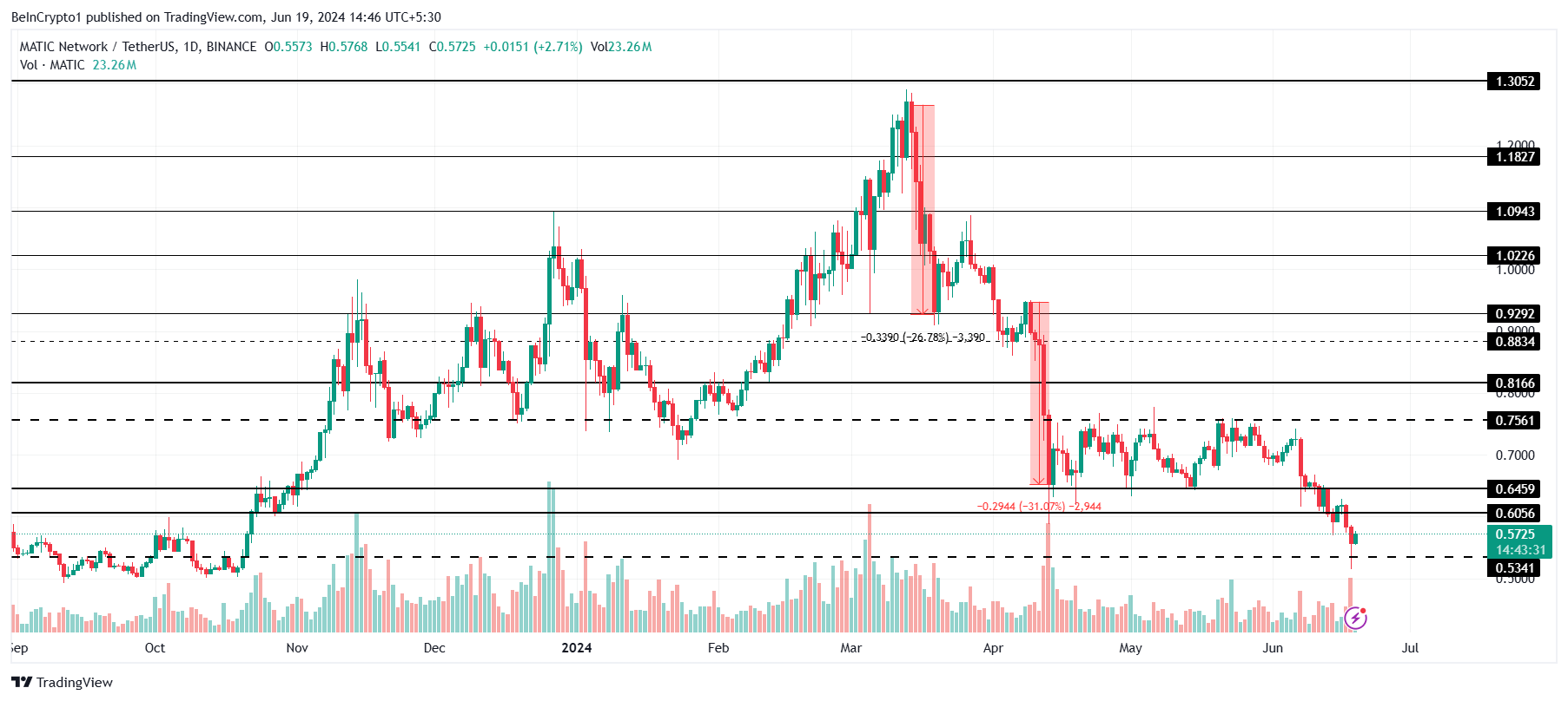 Однако если цена упадет ниже уровня поддержки, это может опровергнуть бычий сценарий. В этом случае Polygon опустится ниже $0,50, что значительно усложнит восстановление актива.