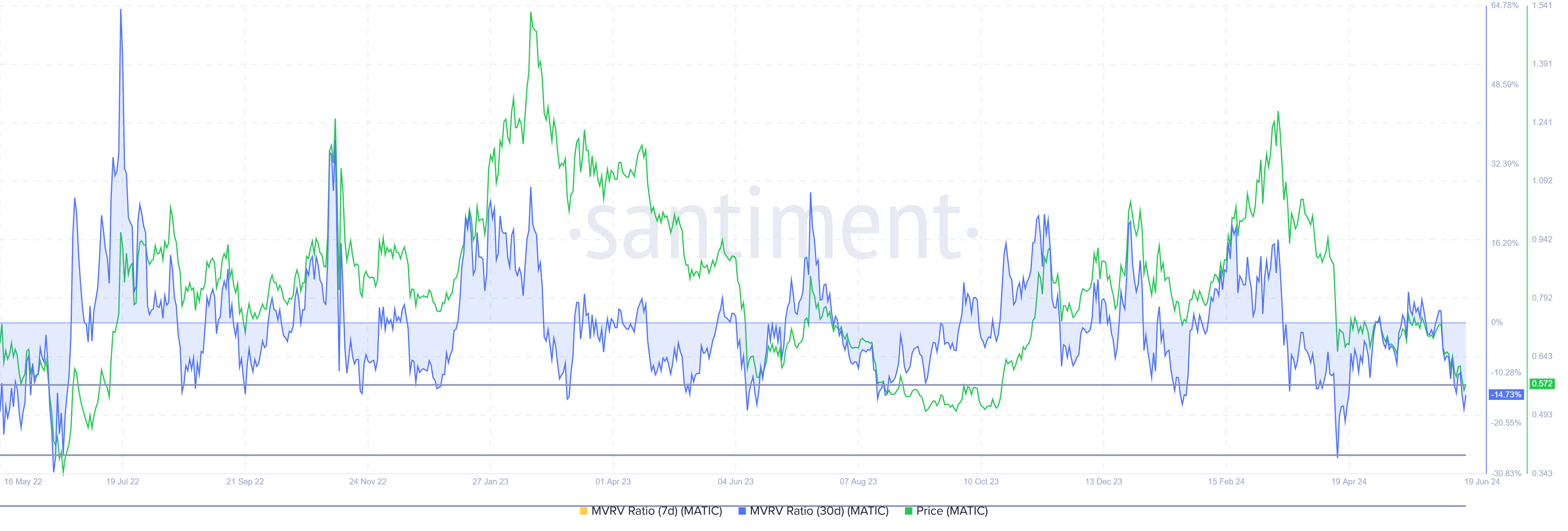Исторически, MVRV MATIC в диапазоне между -10% и -20% обычно сигнализирует о начале ралли и считается зоной возможностей для накопления. Если инвесторы решат пополнить кошельки, токен может начать ралли.