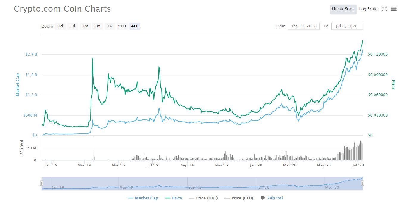 15 июня в топ-10 самых капитализированных криптовалют появился новичок – Crypto.com Coin (CRO). После прорыва в число лидеров монета успела выйти из первой десятки, затем вновь ворваться в нее на 9 место. По состоянию на 8 июля 2020 года, криптовалюта уже несколько дней находится на 10 строчке. Предлагаем узнать больше о новичке, его особенностях и перспективах.