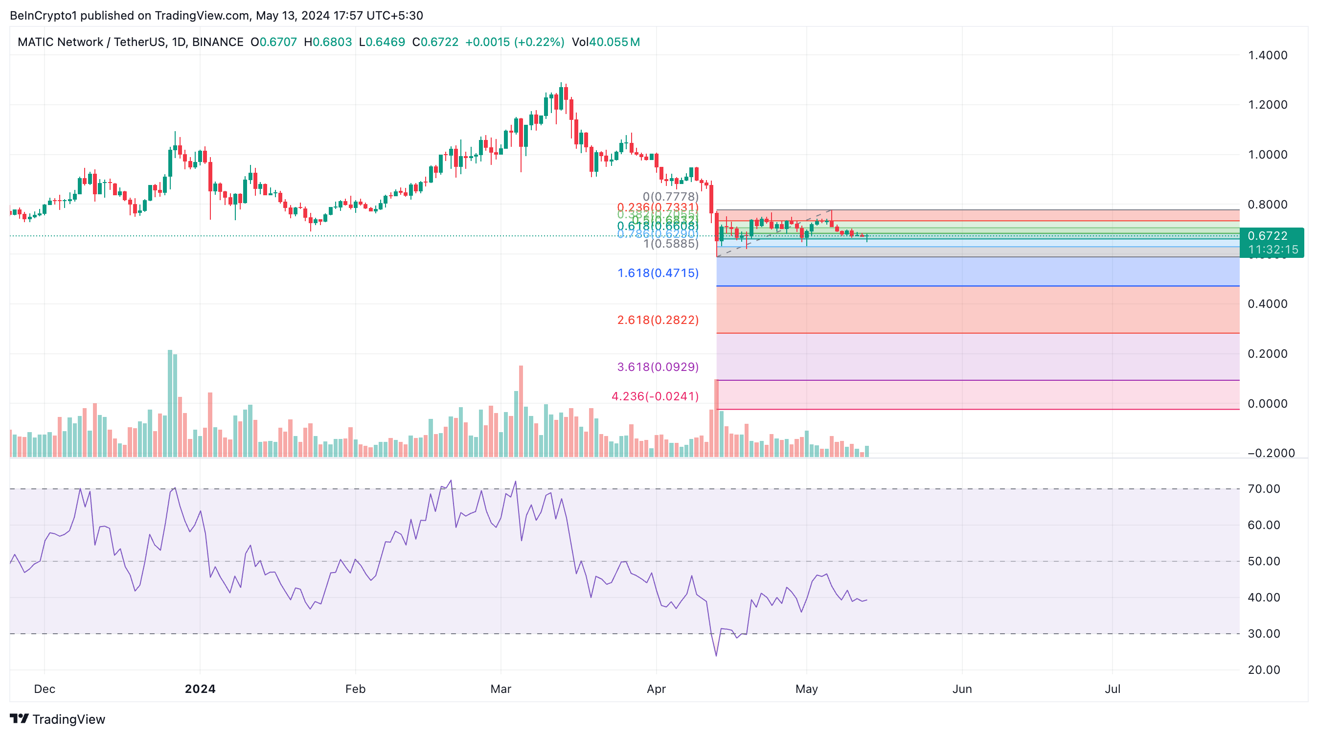 Индекс относительной силы (RSI) MATIC, который на момент написания находится на отметке 39, свидетельствует о том, что участники рынка склонны к продаже токенов. Таким образом, MATIC рискует потерять ключевой уровень поддержки $0,65, который неоднократно тестировался ранее. Если медвежьи настроения усилятся, альткоин может провалиться до $0,62.