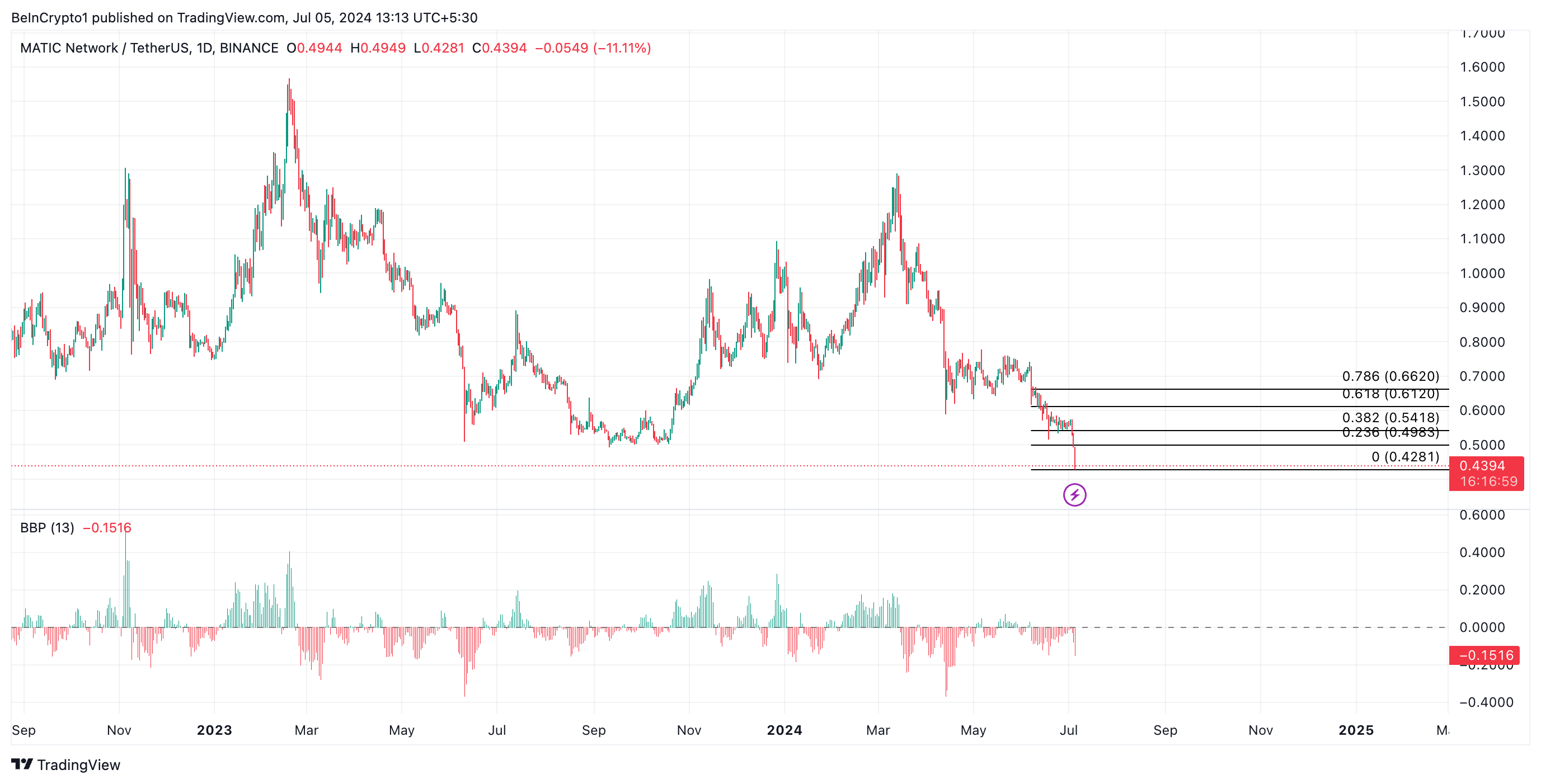 На момент написания MATIC торгуется у отметки $0,44. В последний раз альткоин падал до этих значений в июле 2022 года.
