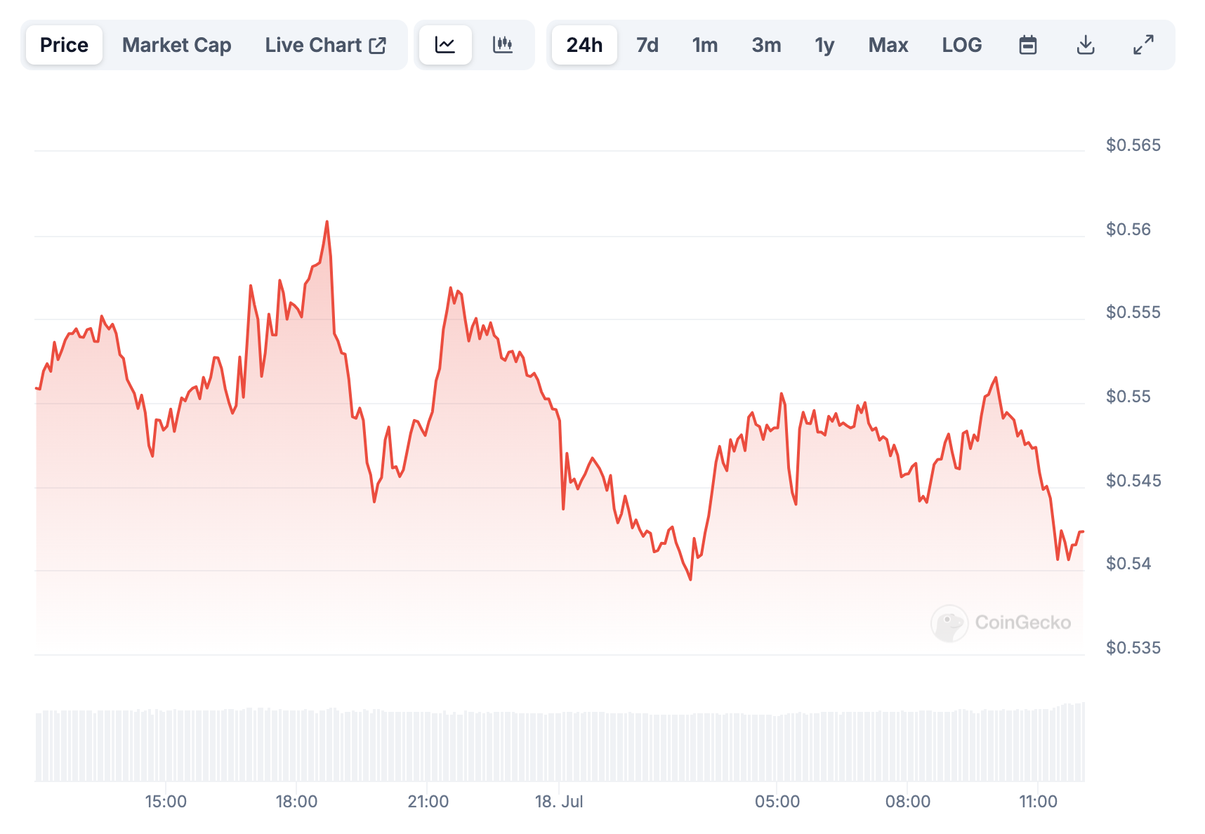 По данным CoinGecko, на момент написания материала MATIC торгуется по $0,5429. За последние сутки цена токена опустилась на 2,3%.