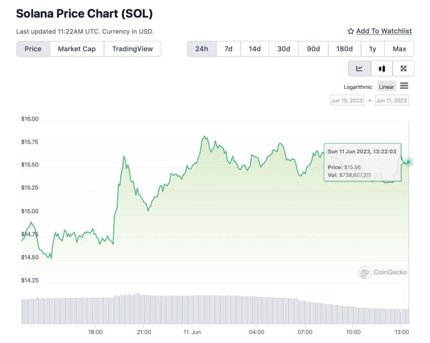 Тем не менее, твит Solana Foundation положительно повлиял на цену актива. За последние 24 часа он прибавил почти 6%.