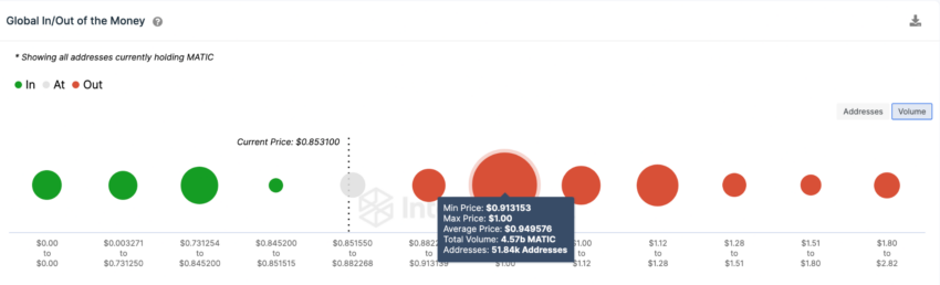 Бычьи ончейн-сигналы говорят о том, что MATIC все же может вернуться к отметке $1. Однако на пути к ней активу придется преодолеть сопротивление 52 000 адресов, которые приобрели 4,5 млрд токенов по цене до $0,95 и могут частично зафиксировать прибыль.
