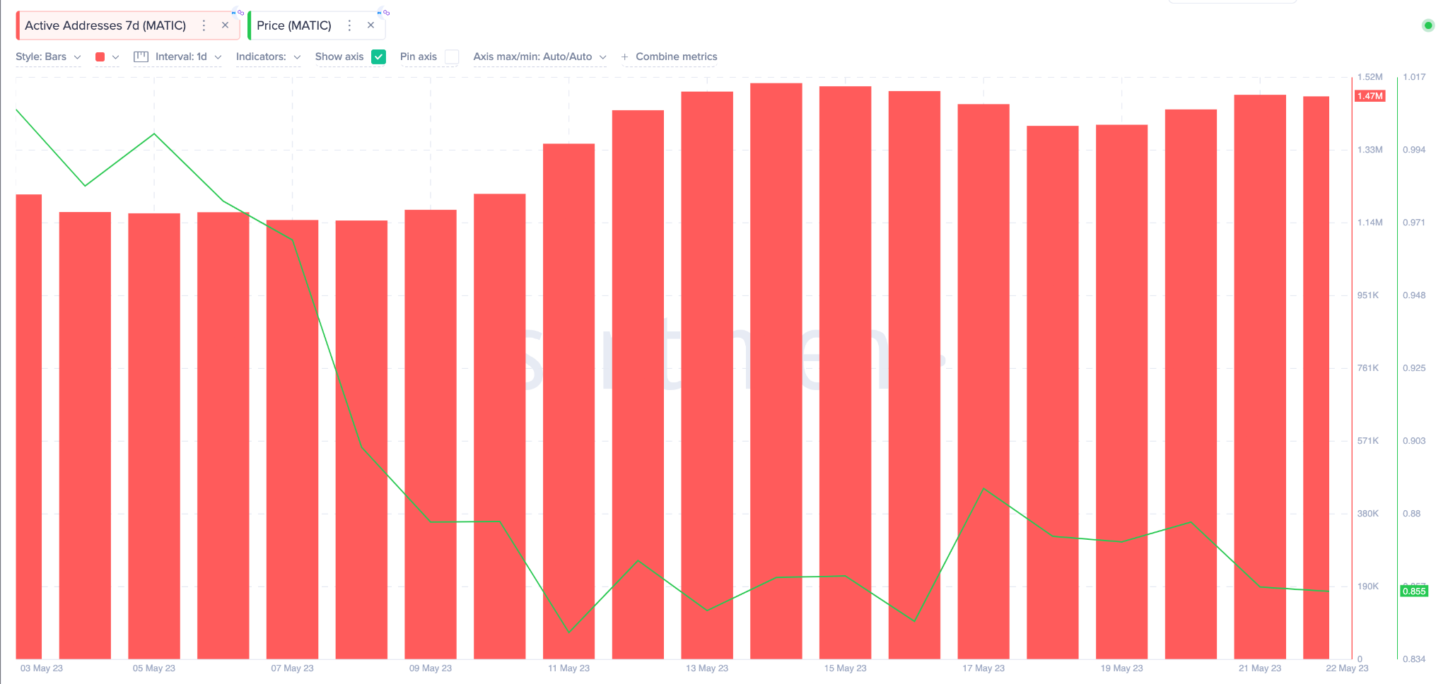 Рост числа взаимодействующих с сетью кошельков во время нисходящего тренда обычно сигнализирует о предстоящем восстановлении цены. Таким образом, если инвесторы продолжат размещать MATIC в стейкинге, а пользователи сохранят активность, бычий разворот может быть уже не за горами.