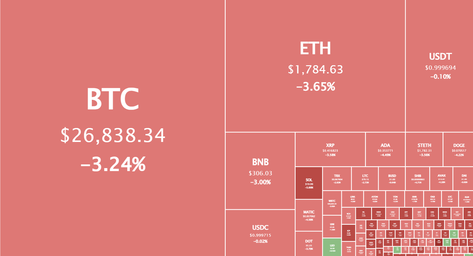 BTC упал ниже $27 000, Чебесков предложил криптобизнесу не ждать регулирования — главные итоги дня в дайджесте BeInCrypto