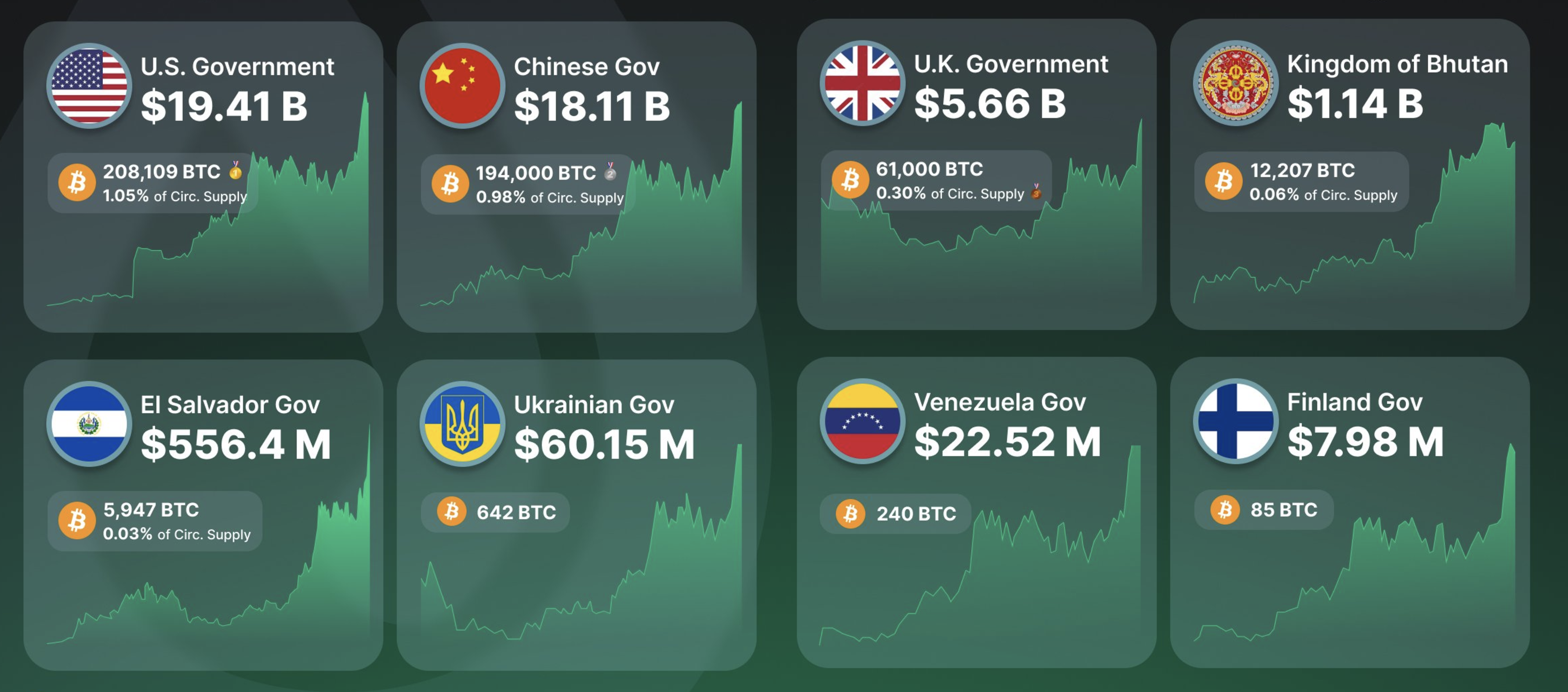За два года рейтинг государств по количеству биткоинов сильно изменился: по состоянию на конец 2022 года Украина находилась на третьем месте по правительственным запасам BTC, уступая лишь США и Сальвадору. Великобритании и Китая вообще не было в списке.
