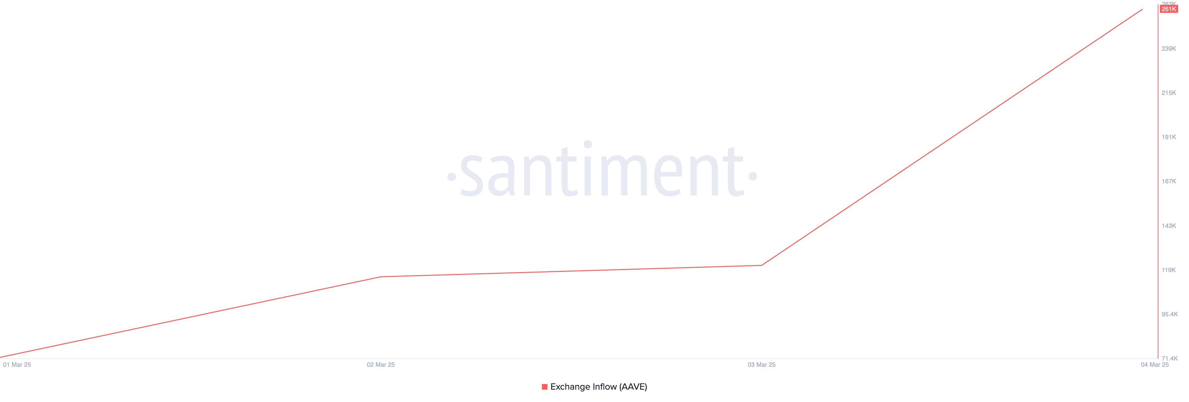 Кроме того, во вторник приток AAVE на биржи значительно увеличился, что подтверждает высокое давление продаж. Согласно Santiment, за указанный период показатель взлетел на 114%.
