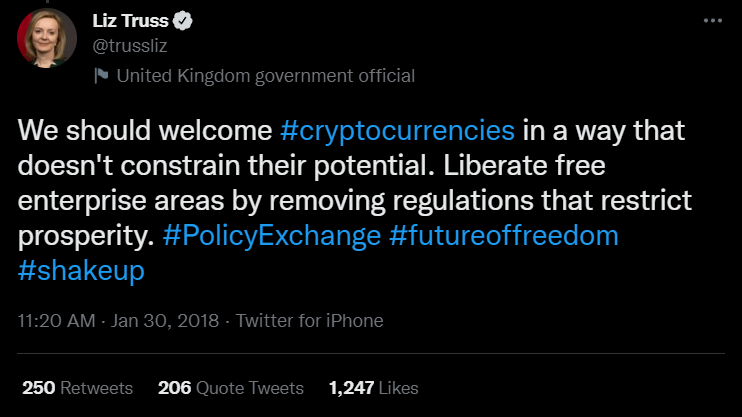 Новым лидером Консервативной партии Великобритании стала Элизабет Трасс, которая ранее призывала упростить регулирование криптовалют