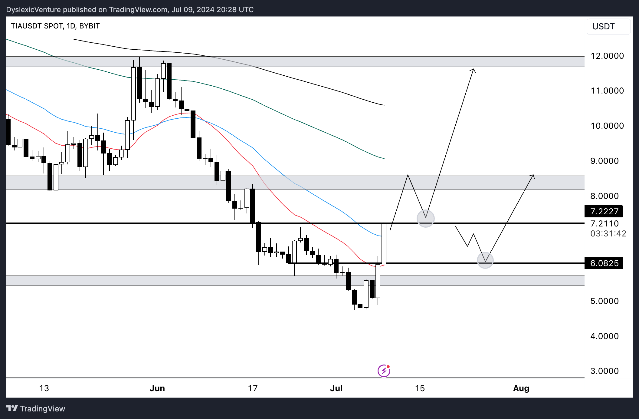 Многие участники криптосообщества видят потенциал дальнейшего роста TIA. Некоторые авторы прогнозов не исключают рост Celestia выше $9 к августу 2024 года. К началу осени, по мнению ряда инвесторов, TIA может прорвать уровень $20.