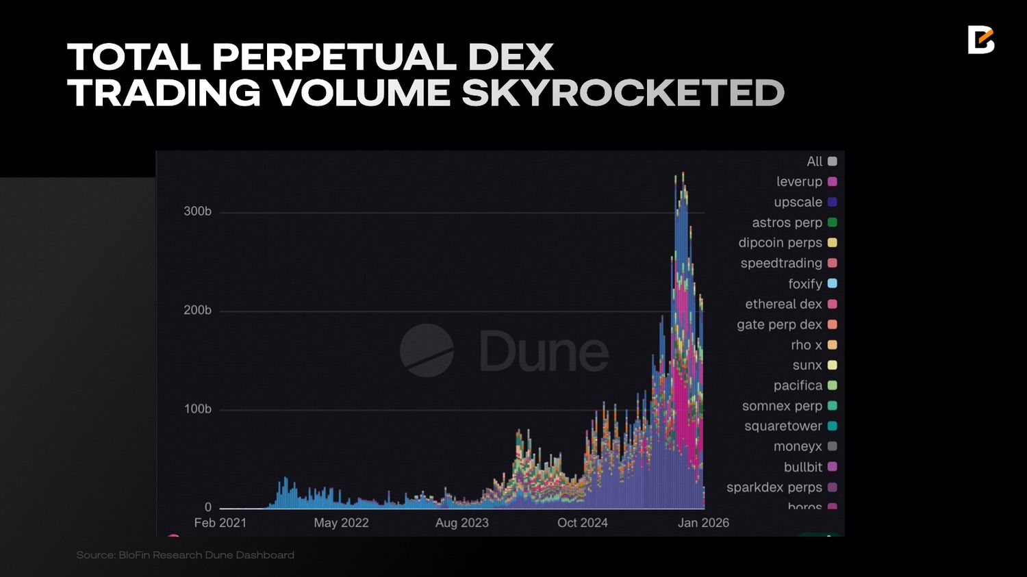 В 2025 году Hyperliquid стал катализатором роста сегмента децентрализованных бирж бессрочных контрактов. Недельные объемы выросли с $81 000 000 000 в 2024 году до $314 700 000 000, а месячные показатели регулярно превышали $1 000 000 000 000, что сделало данный сегмент самым горячим направлением криптоиндустрии. Параллельно началась волна институциональных запусков: Amber инкубировал EdgeX, Binance представила Aster и StandX, Revolut запустил Extended, а Variational получил поддержку Bain Capital и Sequoia India.