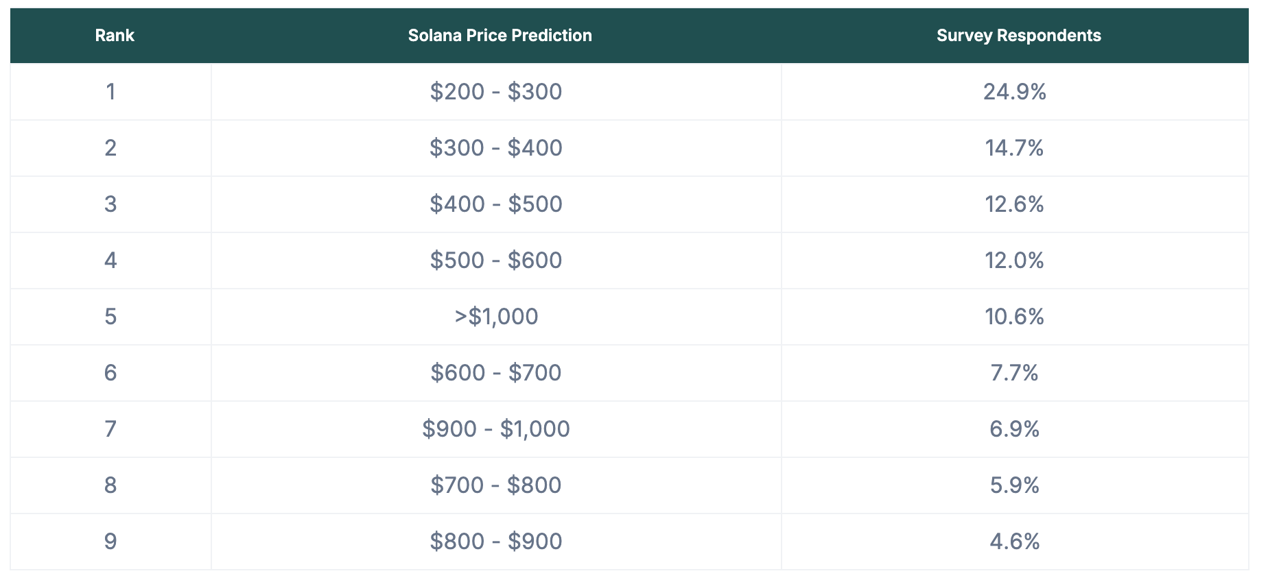 Большинство участников крипторынка проявляют оптимизм по отношению к Solana, но осторожный. Почти четверть респондентов (24,9%) считают, что цена SOL не превысит $300 в этом цикле.
