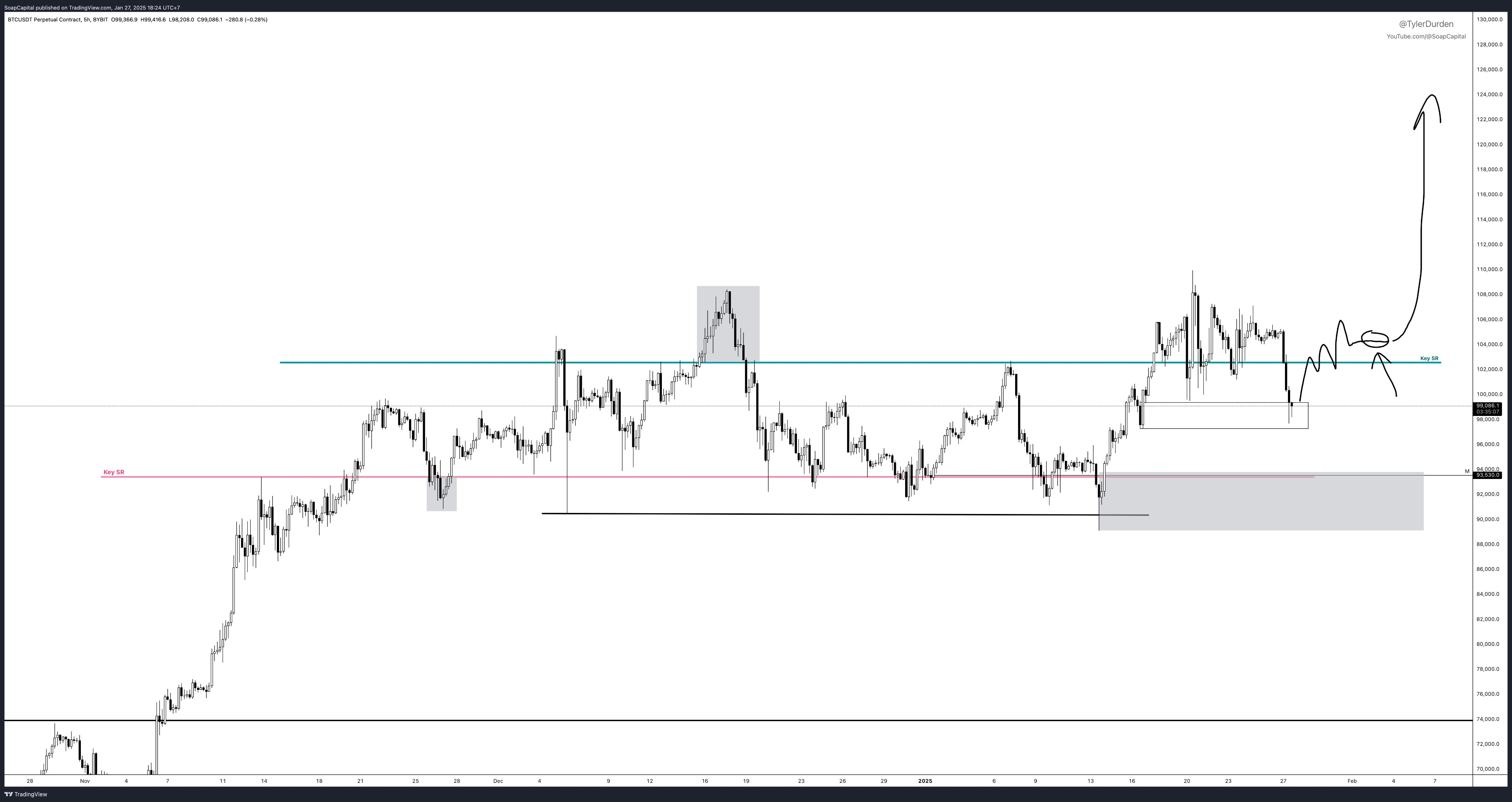 В рост биткоина в феврале также верит трейдер Тайлер Дарден. По его мнению, уже в начале месяца криптовалюта сможет протестировать $124 000.