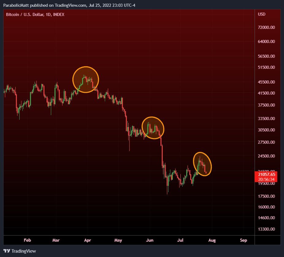 Впрочем, далеко не все участники рынка видят перспективы позитивного движения BTC. Некоторые инвесторы считают, что реализованный в середине июля рост – не более, чем коррекция после затяжного падения. Например, такого мнения придерживается аналитик Мэтью Хайланд.