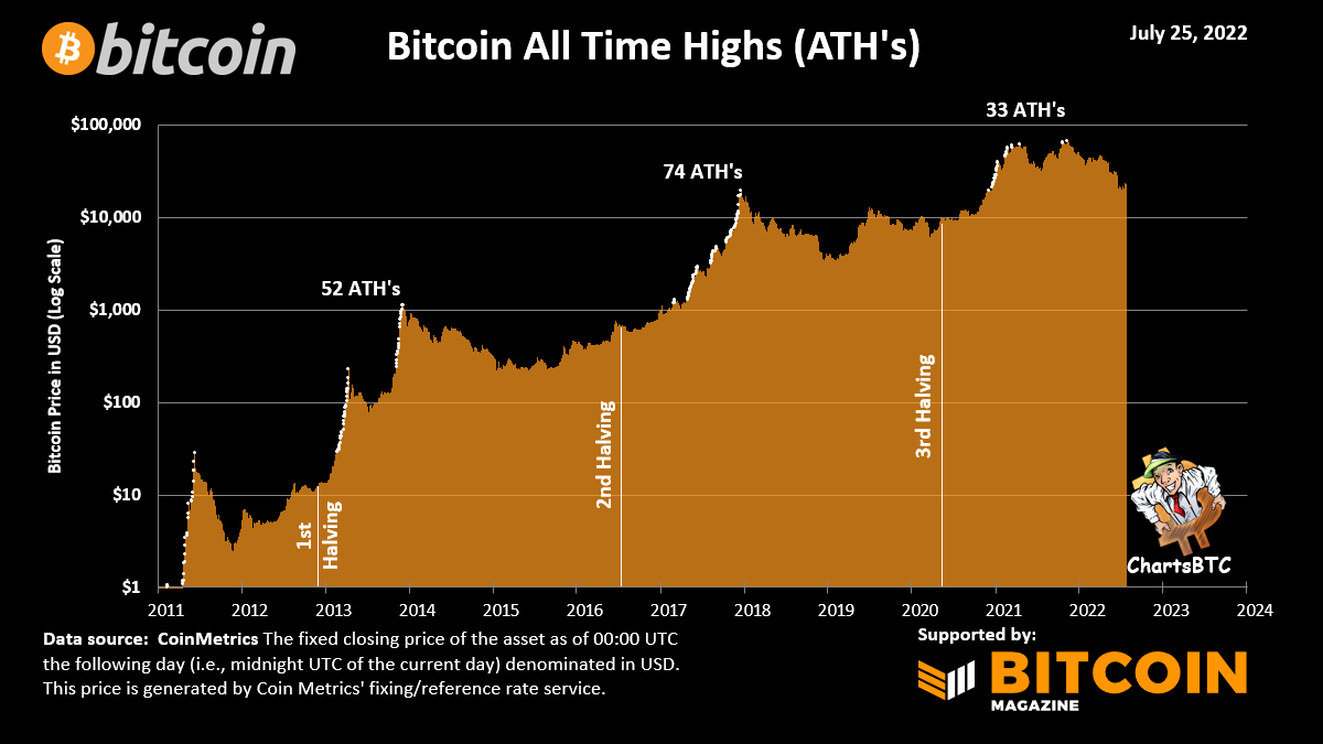 При этом опытные участники криптосообщества напоминают коллегам о том, что биткоин, согласно результатам анализа истории движения криптовалюты, обновляет абсолютный максимум только после халвингов. Напомним, следующее снижения в два раза скорости добычи BTC произойдет в 2024 году.